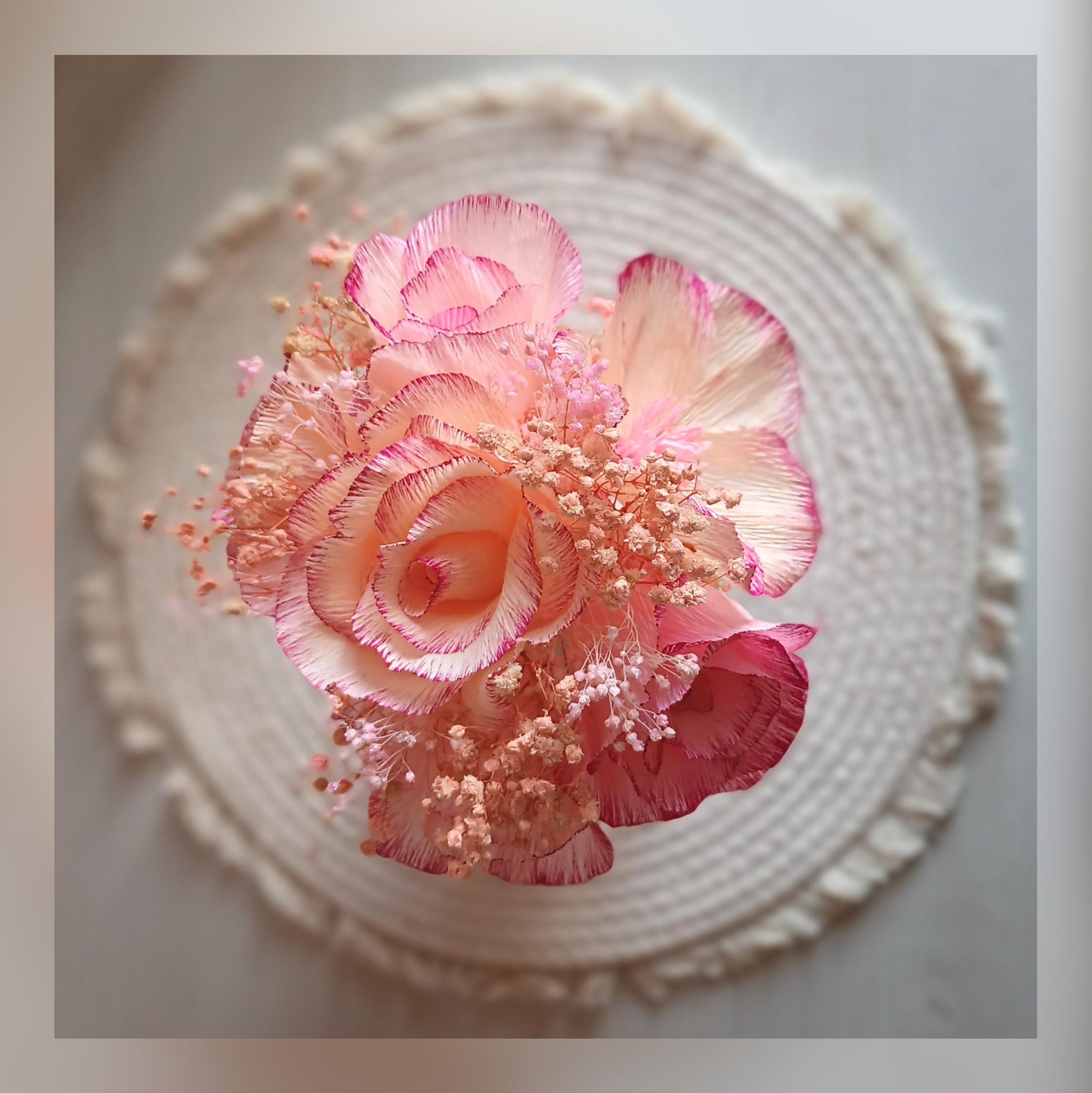 Chaque fleur est façonnée avec soin, pétale après pétale, pour offrir un rendu à la fois délicat, texturé et intemporel.