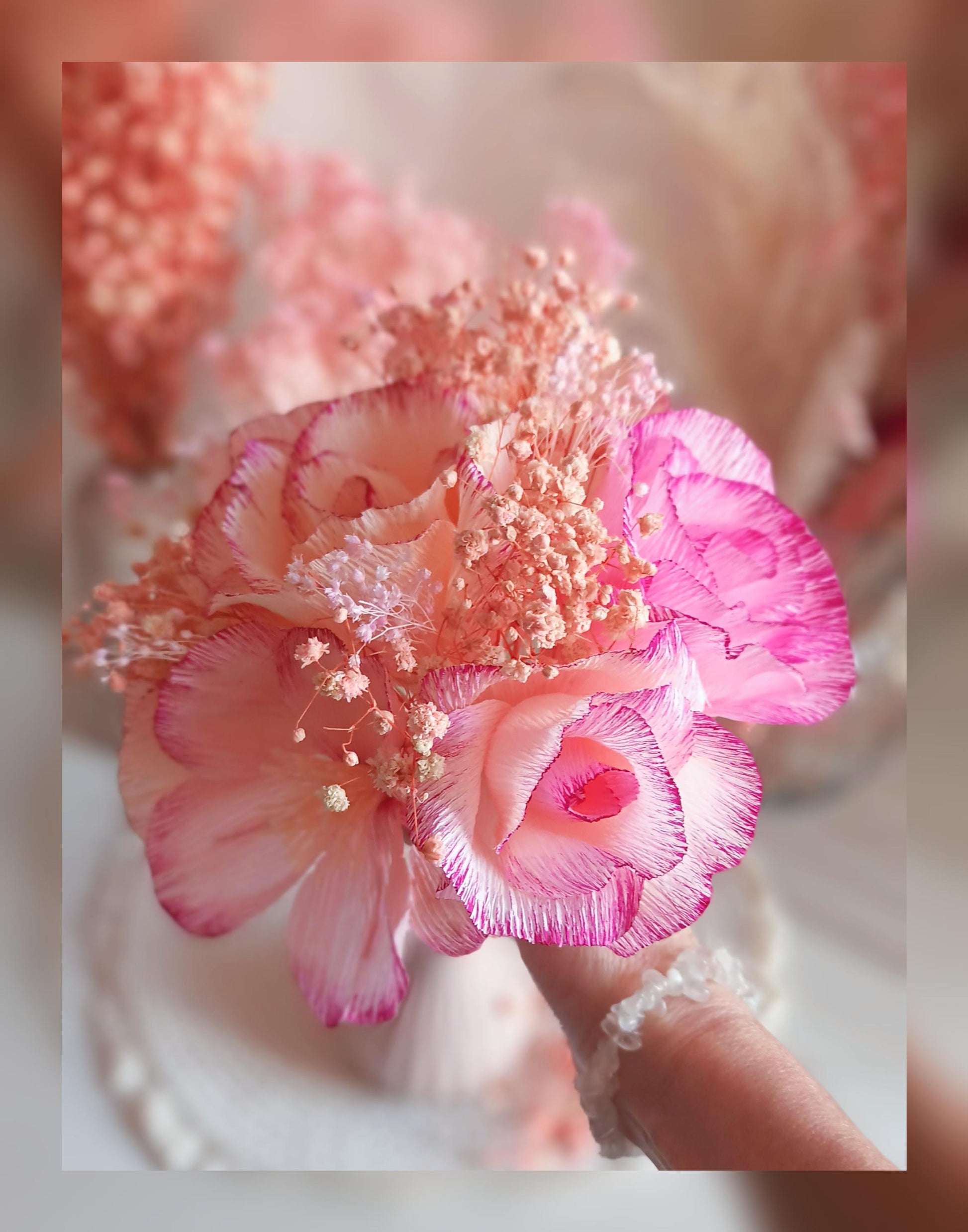 Bouquet de fleurs en papier – Tons roses poudrés